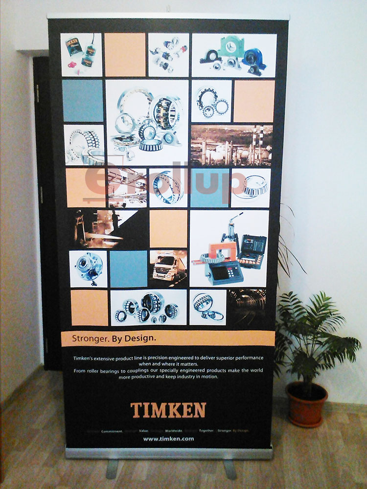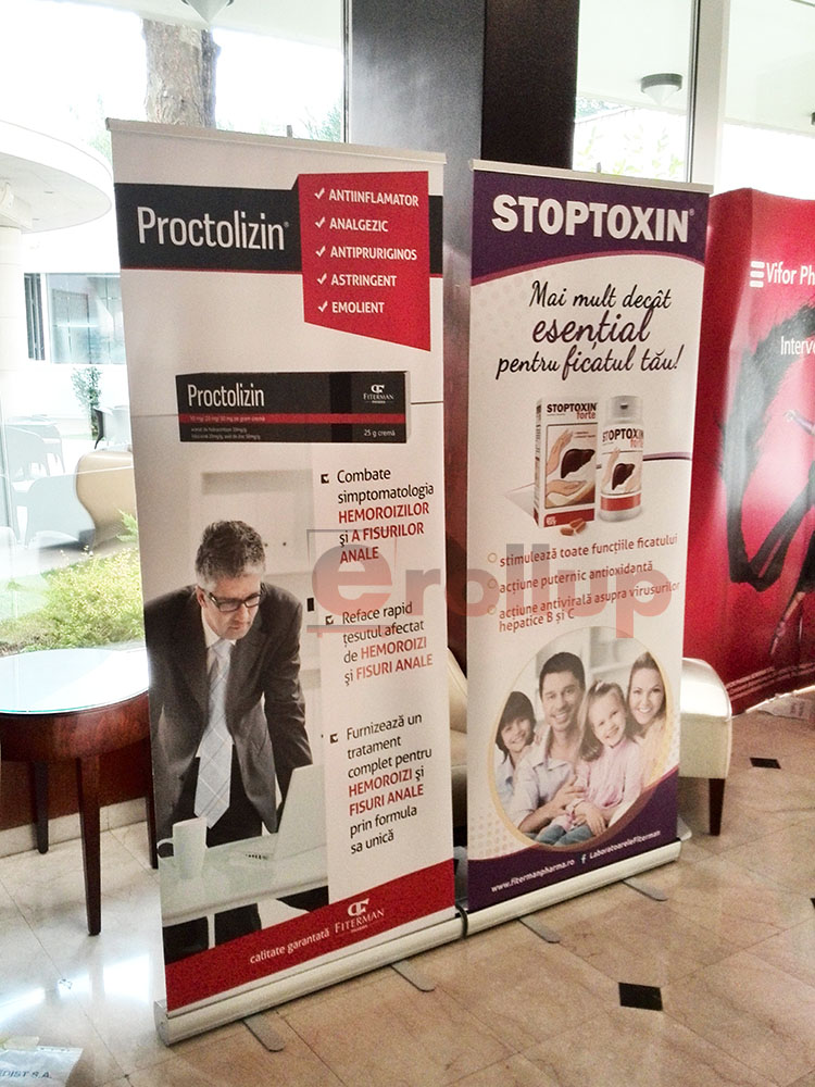 Iti prezentam cateva poze cu sisteme roll-up banner realizate pentru clientii nostri.